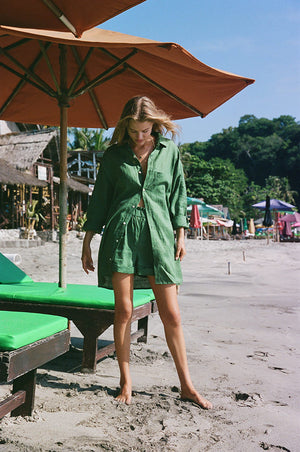 Relaxed oversized tailoring at its best! Crafted from super soft, light-weight 100% French flax linen, this throw-on shirt-dress in warm hues will be your go-to this summer. Thanks to the cooling characteristics of linen, you will feel breezy and luxurious even in warm climates. And it has so many ways to style it! Elevate your wardrobe by layering it over your favourite staples or swimmers, combine it with our matching SUMMER Shorts and style it with your favourite minimal jewellery. Take this all-rounder from daytime to nighttime, city to vacations - this high-rotation piece is made to last.