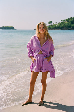 Relaxed oversized tailoring at its best! Crafted from super soft, light-weight 100% French flax linen, this throw-on shirt-dress in warm hues will be your go-to this summer. Thanks to the cooling characteristics of linen, you will feel breezy and luxurious even in warm climates. And it has so many ways to style it! Elevate your wardrobe by layering it over your favourite staples or swimmers, combine it with our matching SUMMER Shorts and style it with your favourite minimal jewellery. Take this all-rounder from daytime to nighttime, city to vacations - this high-rotation piece is made to last.