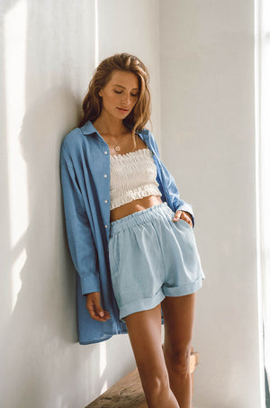 Our SUMMER shirt-dress is designed with an extra oversized fit.