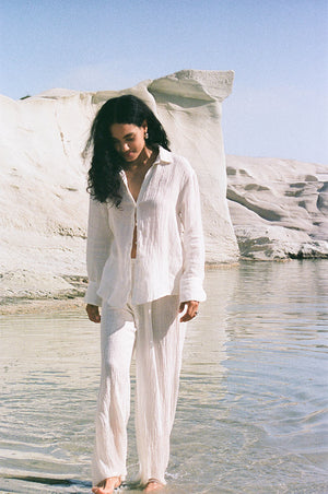 Wear your perfect travel essential as a daytime cover-up with swimmers, style them with a crop top or wear them as a beautiful linen set with our matching ANTHEA Blouse.
