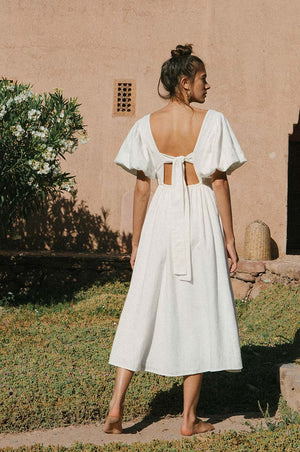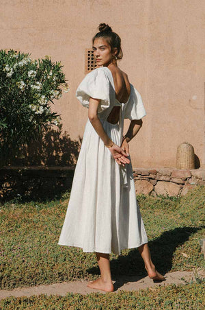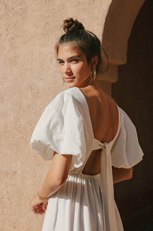 No summer wardrobe is complete without a statement dress - and this is without a doubt our favourite ROVE design of all time! The floaty, feminine silhouette has us dreaming of balmy evenings in great company. We are in love with the gorgeous puffed sleeves and the sophisticated back tie detail. Fully lined and crafted from a beautiful, subtly textured cotton-linen-viscose that feels equally refined and effortless. A timeless favourite for your next chic escape or a chic weekend plan.