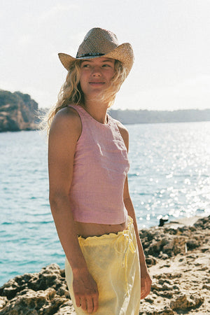 Keep it cool and chic with our linen tank top in soft rose. Perfectly versatile for both summer days in the city and tropical island escapes, the PALMA top shows just how effortlessly stylish pastel linens can be. Made from highly breathable, premium 100% French flax linen, it’s the only fabric you’ll want to wear as the days get warmer.