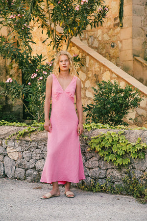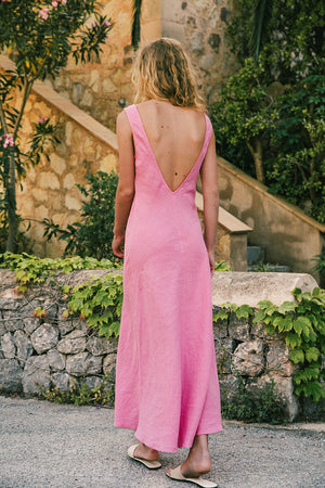 Slip into effortless style with this versatile linen midi dress, your perfect go-to for sun-soaked summer days. From casual beach days to sunset dinners by the sea, you’ll never want to take the DEIA Midi Dress off. The flattering bias-cut beautifully compliments your silhouette, while the chic low-back and softly gathered bust let you go braless; showing off sun-kissed skin on balmy evenings.