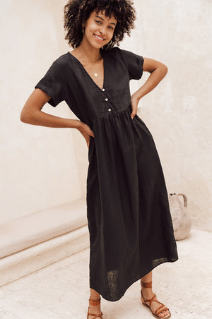The perfect all-round dress for your sunseeking adventures! This cute babydoll midi dress with side pockets is based on our absolute bestseller, you will live in it! Crafted from the softest linen and designed in a flowy cut, it keeps you cool even in hot climates.