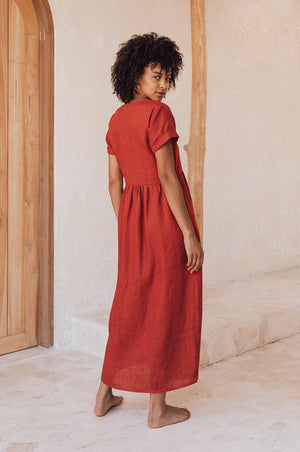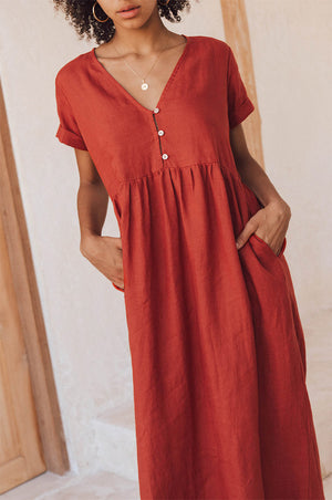 The perfect all-round dress for your sunseeking adventures! This cute babydoll midi dress with side pockets is based on our absolute bestseller, you will live in it! Crafted from the softest linen and designed in a flowy cut, it keeps you cool even in hot climates.