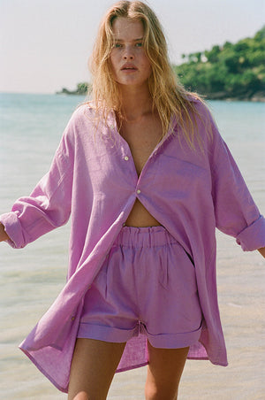 Such an effortless essential for your holidays and beyond! The highly flattering design of our SUMMER shorts and their super soft feel of light-weight, 100% French flax linen make them the perfect addition to your wear-forever summer wardrobe. They feature an elasticated waistband for extra comfort and side pockets with beige lining to reduce transparency. Style them with our SUMMER linen shirt-dresses for an instant sophisticated sunshine outfit you will live in all summer long.