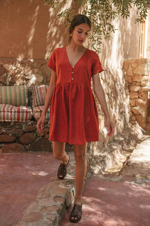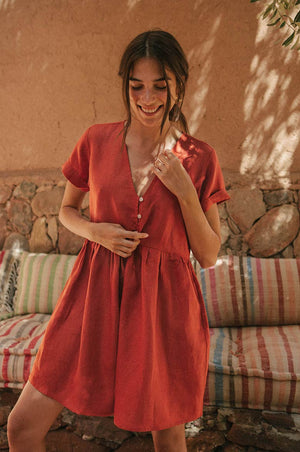 The perfect all-round dress for your sunchasing adventures! This cute babydoll dress with side pockets is our absolute bestseller, you will live in it! Crafted from the softest linen and designed in a flowy cut, it keeps you cool even in hot climates.