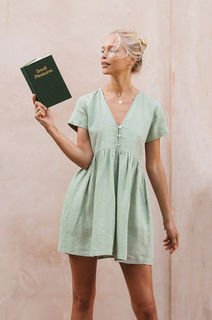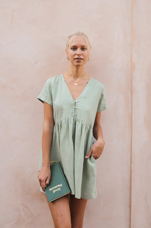 The perfect all-round dress for your sunchasing adventures! This cute babydoll dress with side pockets is our absolute bestseller, you will live in it! Crafted from the softest linen and designed in a flowy cut, it keeps you cool even in hot climates.